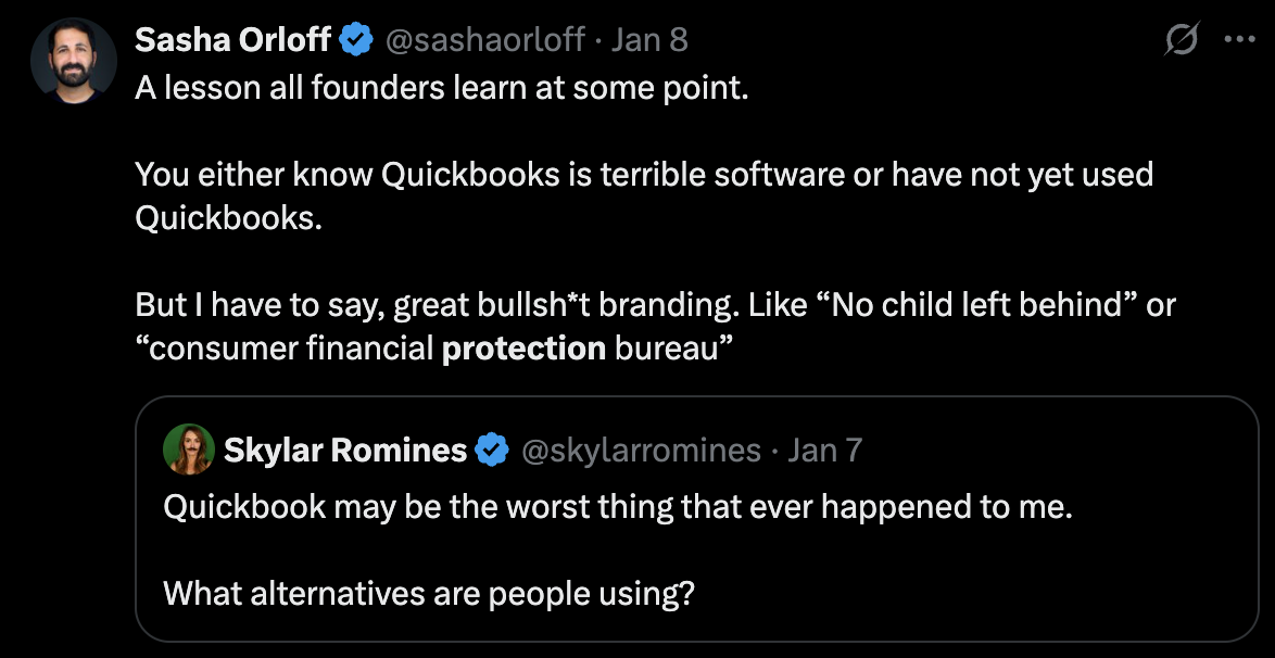 December 13, 2023: Six months after my termination, CEO shared “failure.museum” - a site documenting failed startups - with laughing emoji, commenting “Power law of venture capital at it’s finest. RIP FTX, Juicero, Hopin…” This was posted while LendUp (CFPB shutdown, 140,000+ victims, $0 to shareholders) was conspicuously absent from his reflection on startup failures. I forwarded this post to [email protected] in December 2023, adding to the documentation already provided to senior reporter Connie Loizos in August 2023. The performative contempt for regulatory accountability came while operating accounting software trusted for financial reporting and tax preparation.