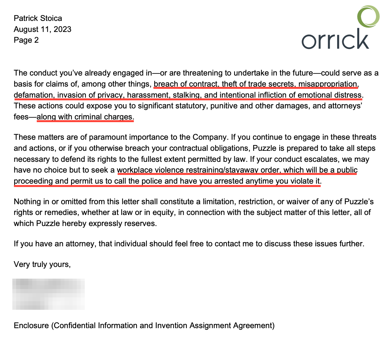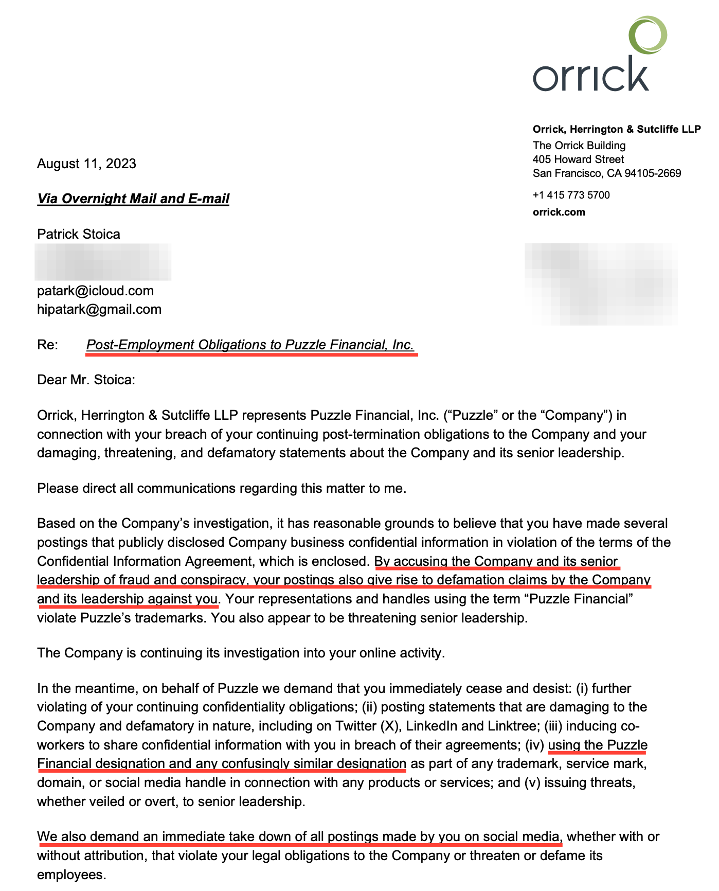 - Second Cease-and-Desist Letter Received (6:02 PM ET): Orrick law firm same-day retaliation; criminal prosecution threats; 48-hour takedown demand