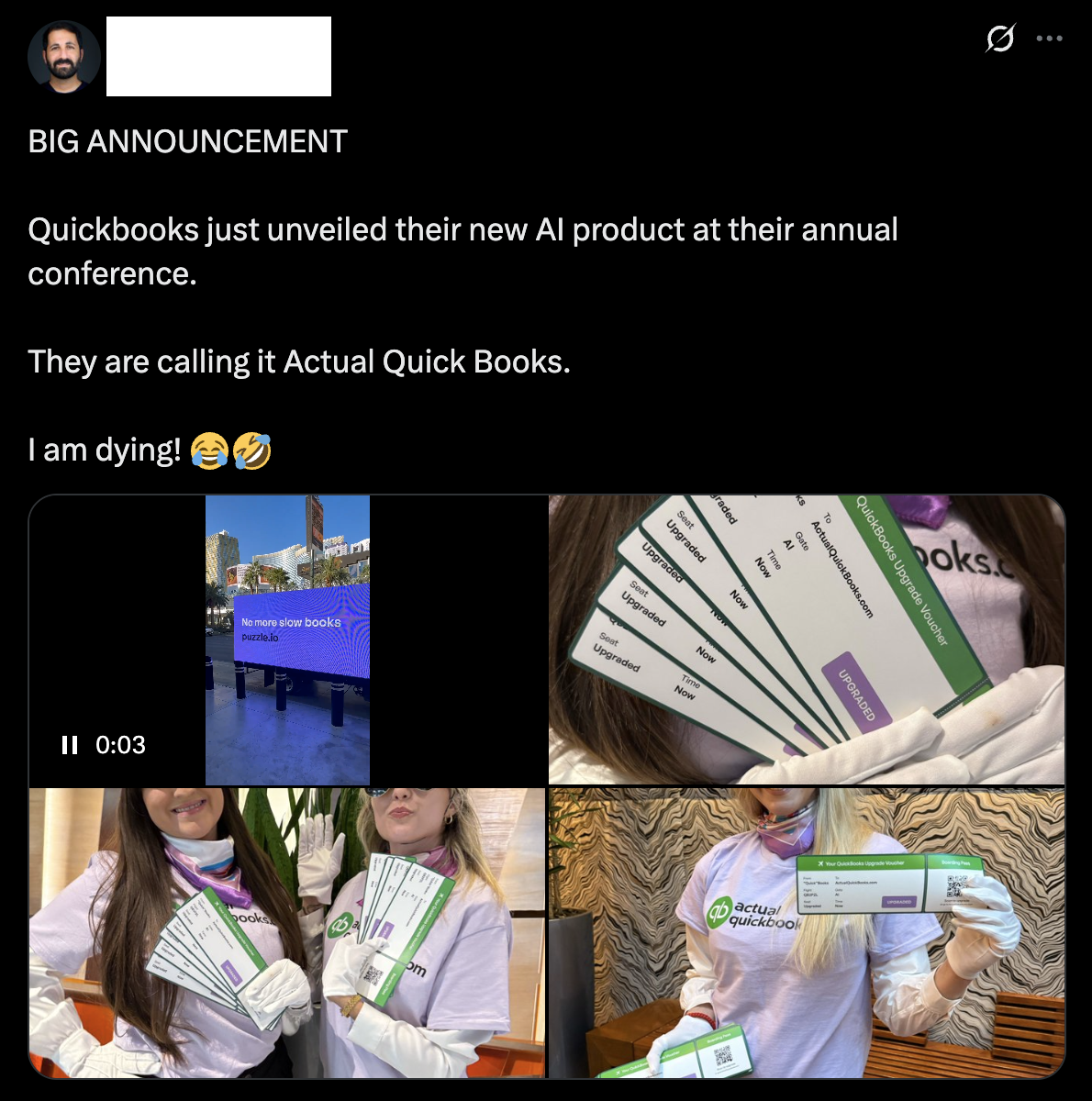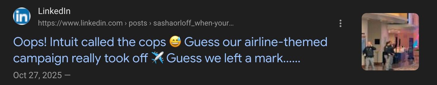 October 27, 2025: ActualQuickBooks campaign with photoshopped metrics (3 likes → 12,362), police intervention, evidence deletion