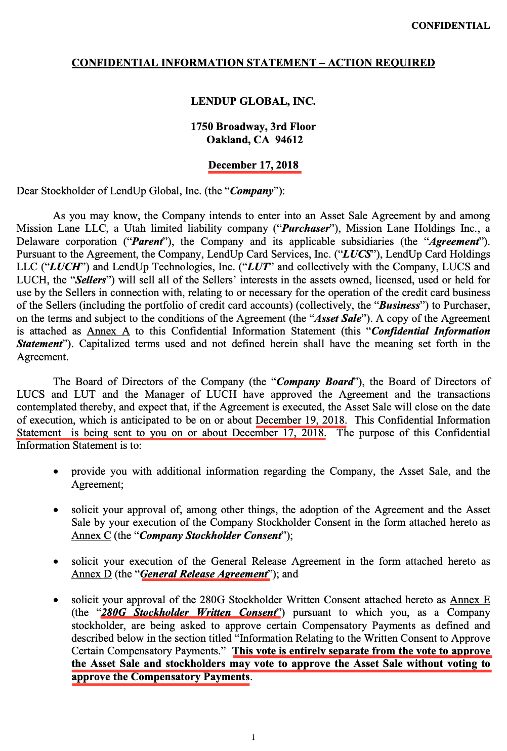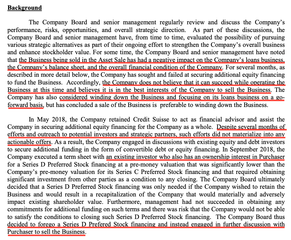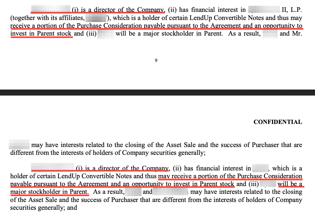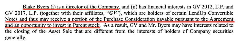 | +---> NOT disclosed to LendUp shareholders
