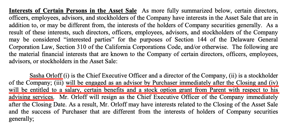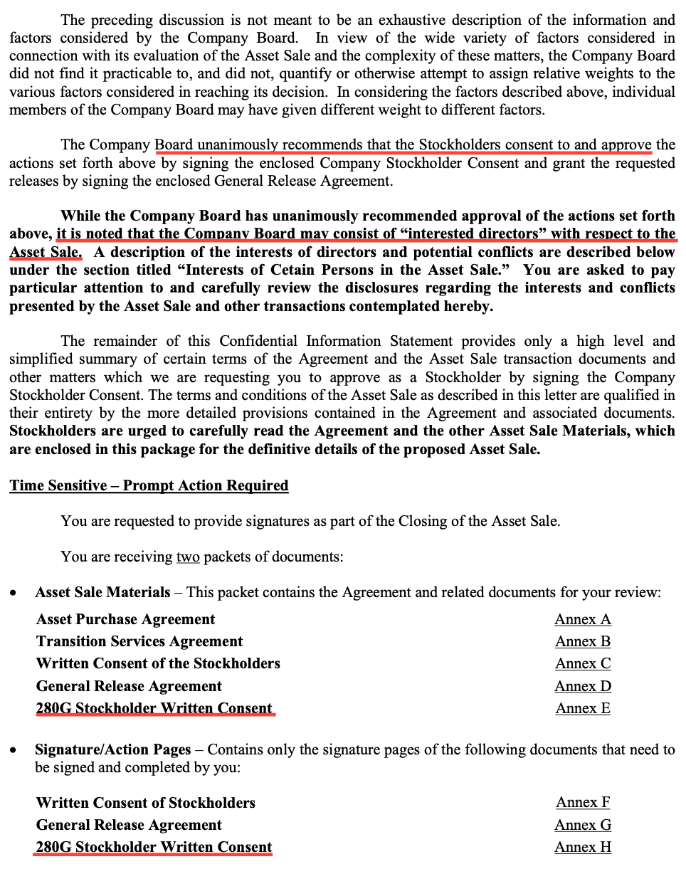 - Multiple investors and board members across entities, creating overlapping interests in asset sale structure