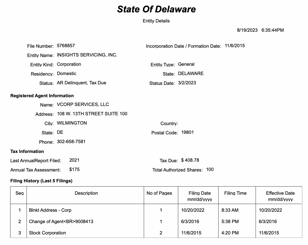 +---> Insights Servicing Inc. (2015-2023)