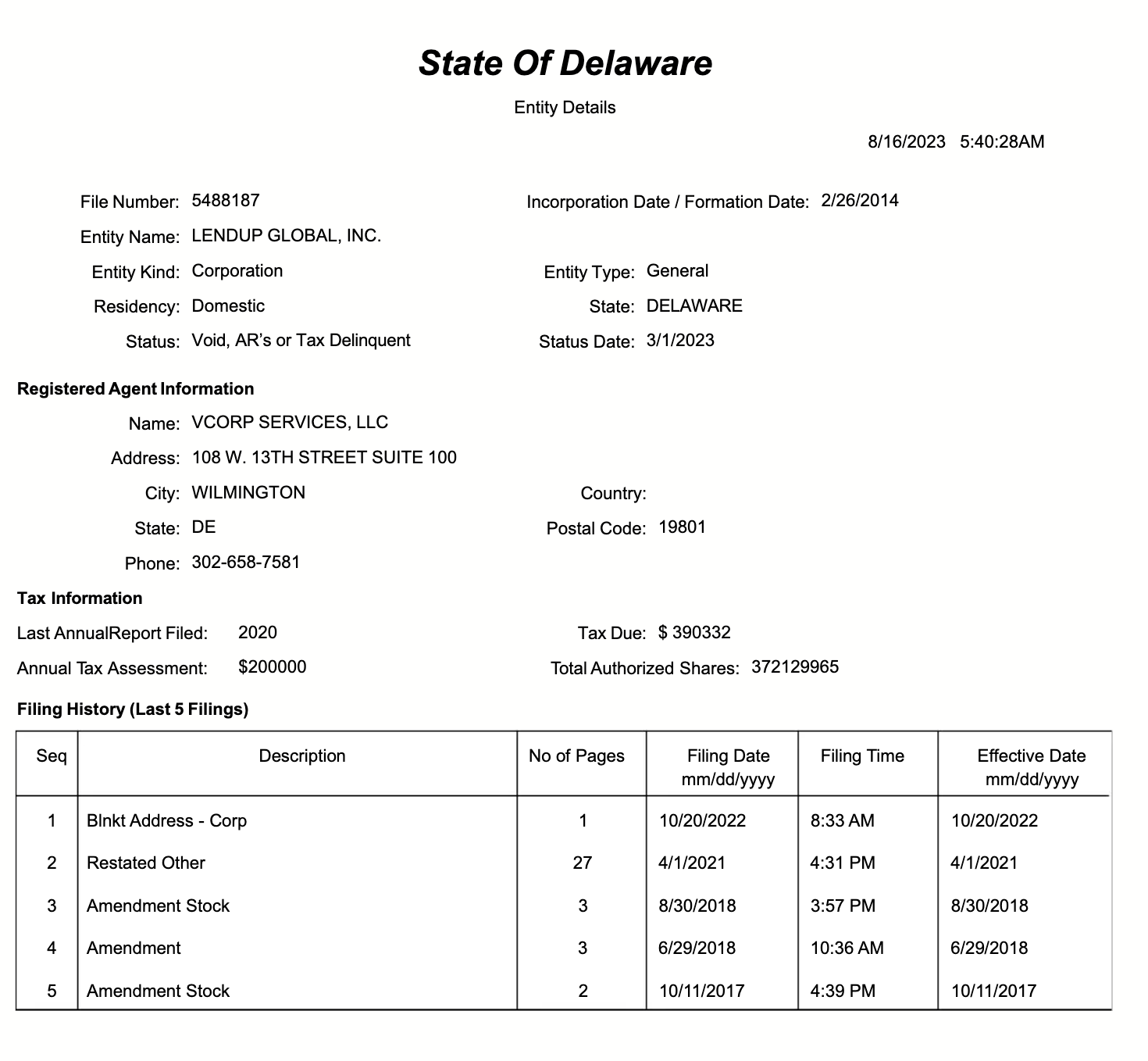 | +---> Tax delinquent March 2023